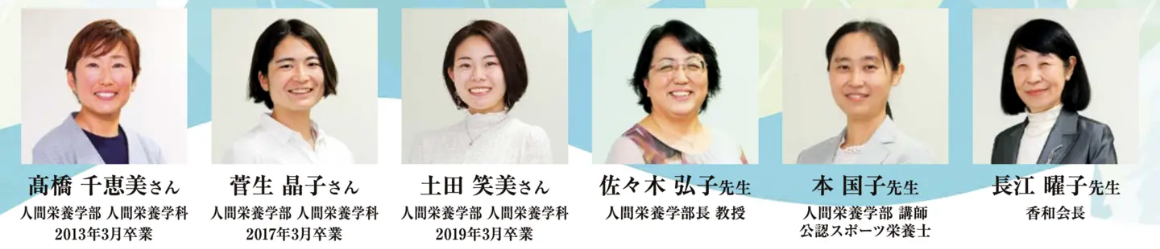 「和」とは、なごみであり、親しみであり、穏やかさであり、助け合うことであり、他人を思いやること。聖徳大学には、学生時代に身につけた専門性を活かしながら、社会にそうした「和」の精神を広げる活躍をしている卒業生がたくさんいます。今回は「食」や「スポーツ」を通して、健康で豊かな社会の実現を目指す3名の卒業生に、聖徳大学で育まれた専門性と人間力について、そして、それを社会にどう還元しているのかを、人間栄養学部の恩師である先生方と共に語り合っていただきました。