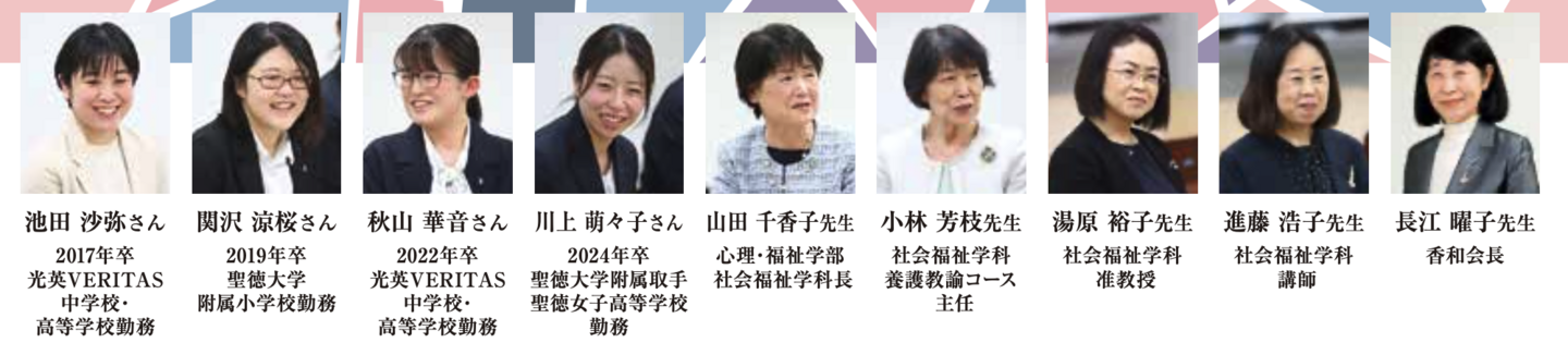 長江 在学生の皆さんにはマニュアルだ けではなく、聖徳の「つながる力」もバトンやたすきのようにつないでいってほし いですね。卒業生には親子2代で聖徳で学んでいる方も数多くいらっしゃいま すし、勝見さんのように大学院で学び直しをされる方もいらっしゃいます。香和会特待制度も役に立ちますね。卒業後も聖徳とのつながりを活かして、「和の 精神」でより豊かな人生を送っていただ ければと思います。