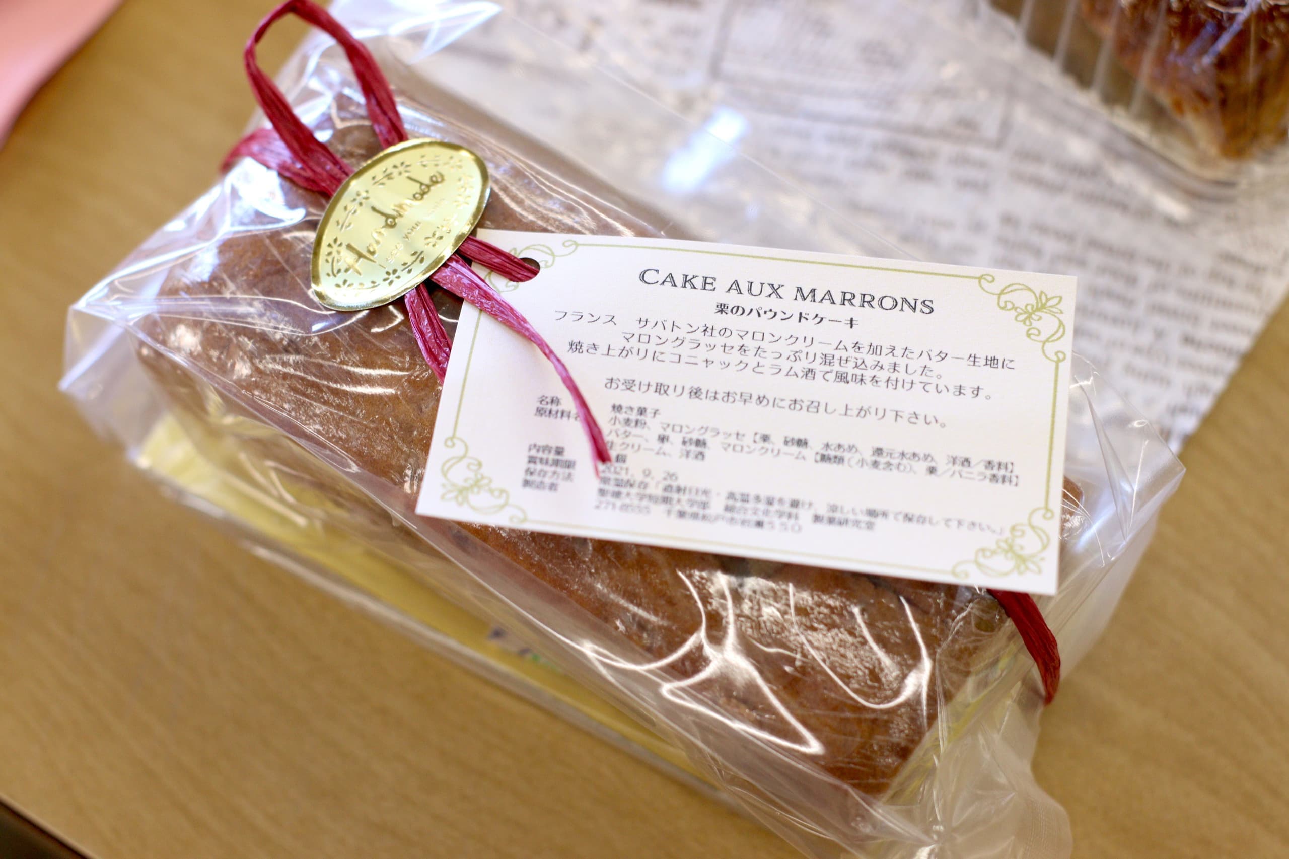 なお、リモートを含む参加者全員へのお土産として、今年度は総合文化学科山﨑正也教授特製の秋らしい「マロングラッセ入りパウンドケーキ」をはじめ「香和会オリジナルエコバック」「香和会オリジナルクリアファイル」「オリジナルスタンペン」をご用意致しました。