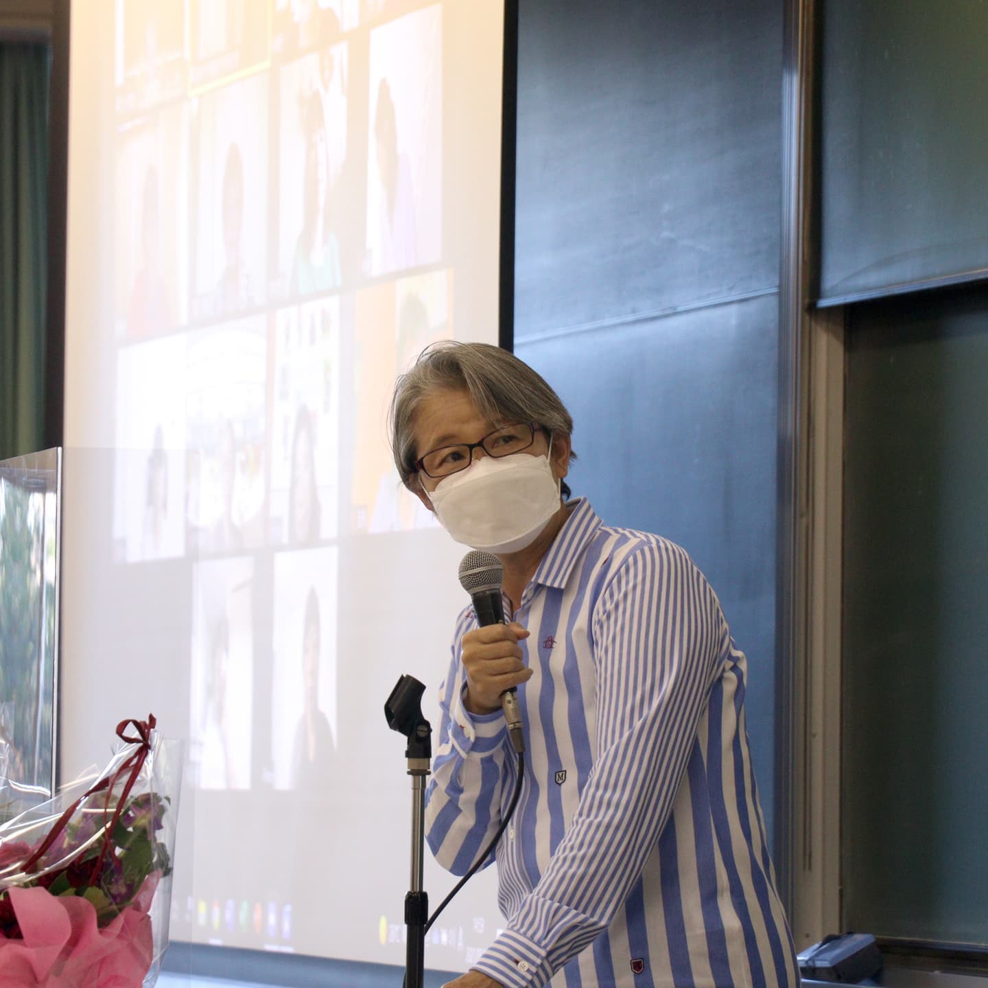 そして「北から南まで母校愛を語る」という企画では、全国で活躍する5名の卒業生をリモートで繋ぎ、川並珠緒園長先生の進行により、学生時代の思い出や、卒業後のバラエティに富んだ現在の活動をそれぞれ語っていただき、会場は大いに盛り上がりました。