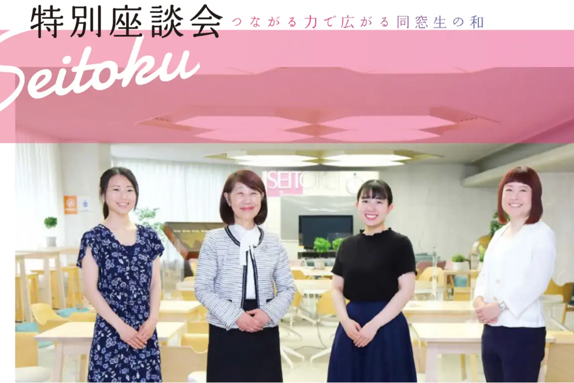 共に学び、お互いに高め合った同期生との絆はもちろん、先輩や後輩との結びつき、さらには恩師である教 員との卒業後も続く交友は、学生時代に得られる最大の財産であり、一生の宝物です。そのように貴重な学 生同士のつながりを演出し、マネジメントしているのが学友会。新旧の学友会会長にお集まりいただき、聖徳 が誇る「つながる力」について語り合っていただきました。
