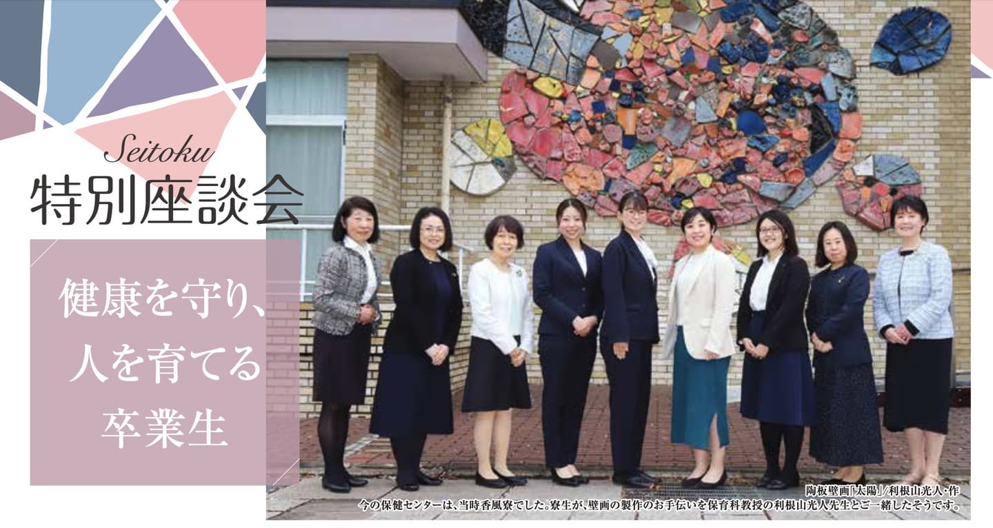 「和」とは、なごみであり、親しみであり、穏やかさであり、助け合うことであり、他人を思いやること。聖徳大学には、学生時代に身につけた専門性を活かしながら、社会にそうした「和」の精神を広げる活躍をしている卒業生がたくさんいます。今回は「食」や「スポーツ」を通して、健康で豊かな社会の実現を目指す3名の卒業生に、聖徳大学で育まれた専門性と人間力について、そして、それを社会にどう還元しているのかを、人間栄養学部の恩師である先生方と共に語り合っていただきました。